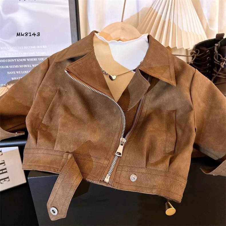 کت چرمی بچگانه قهوهای طرح پوست مدل زیپ دار