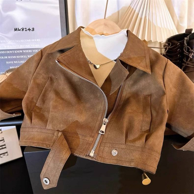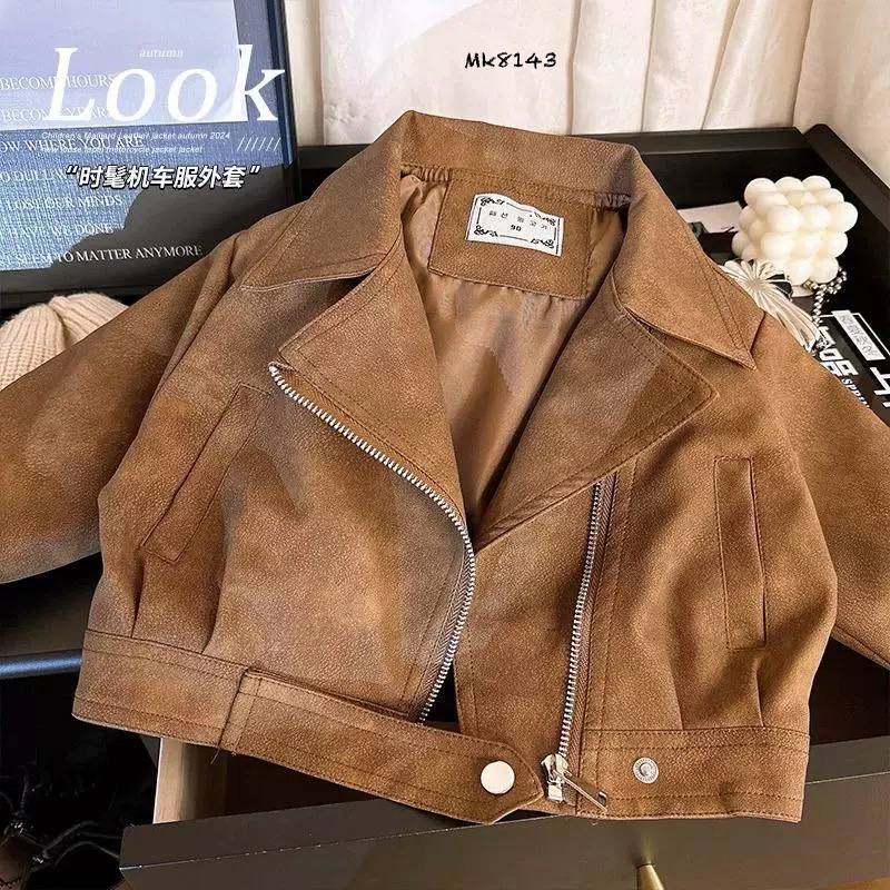 کت چرمی بچگانه قهوهای با طرح پوست، انتخابی خاص و شیک برای استایل پاییزی و زمستانی کودکان است.