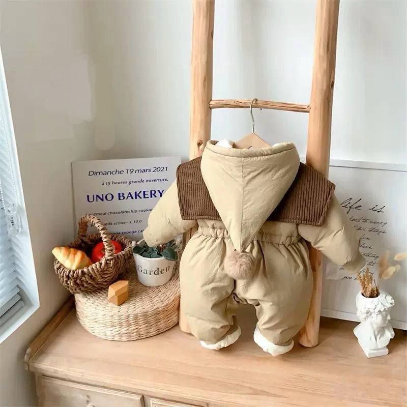 کاپشن سرهمی گرم نوزادی کرم قهوه ای